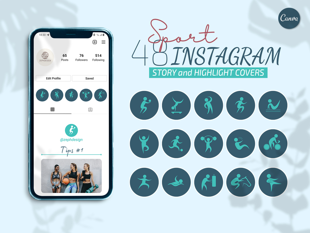 Canva Templates: Sport Instagram Story and Highlight package 1in48